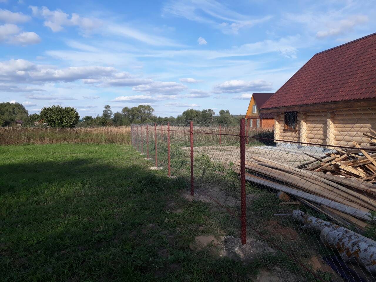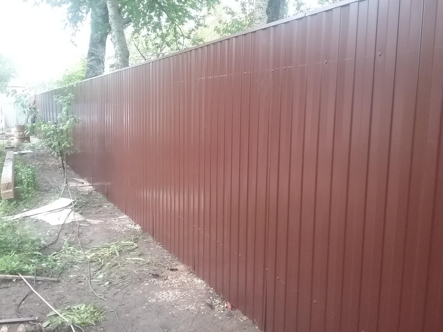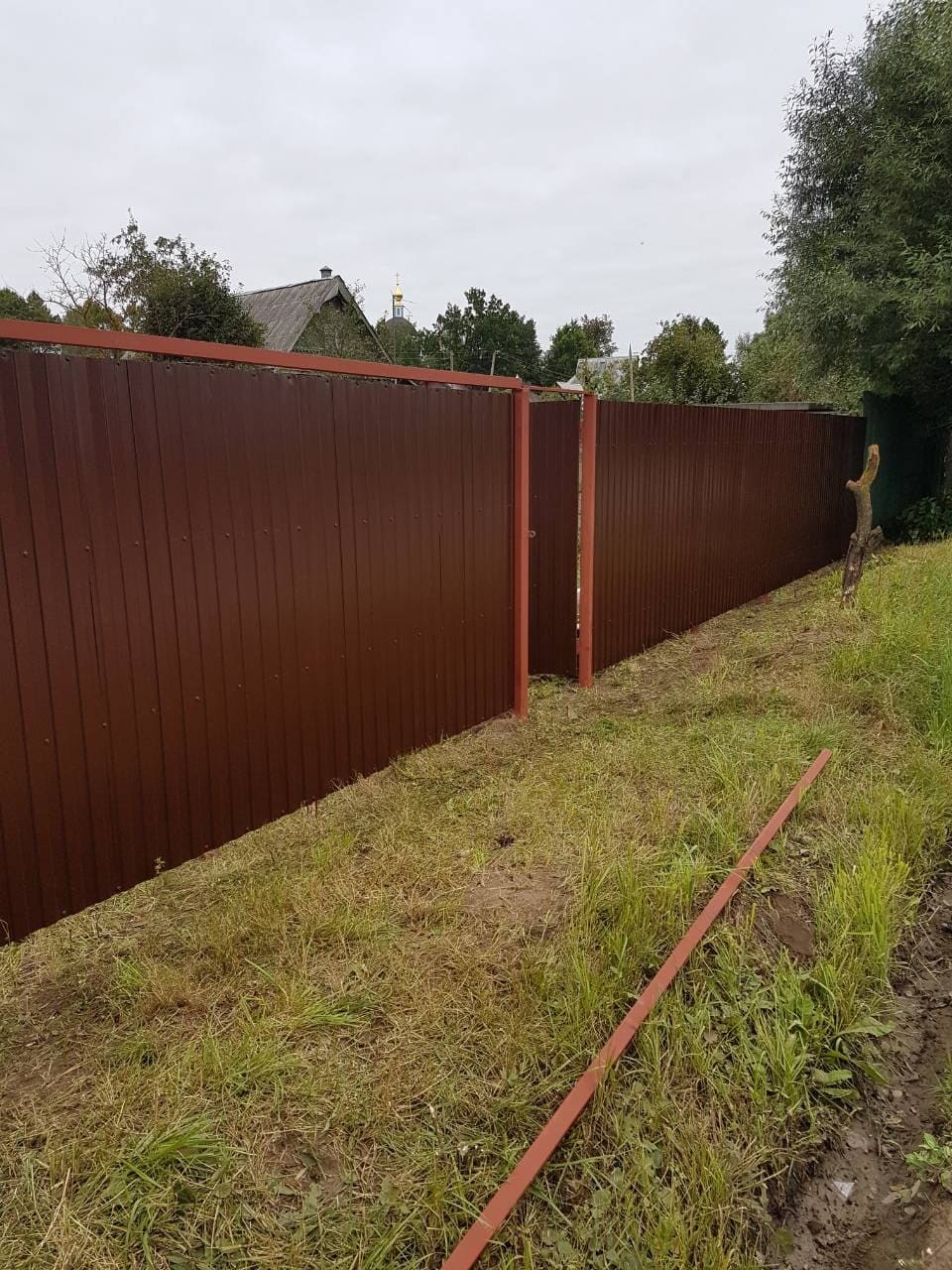 - Материал: Профнастил, металлический штакетник, сетка, проф труба, дерево