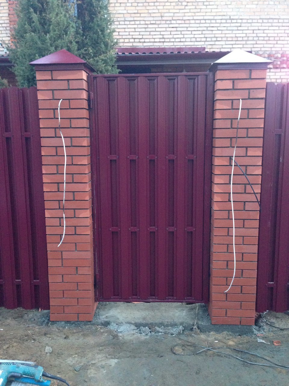 Монолитные заборы с кирпичными столбами